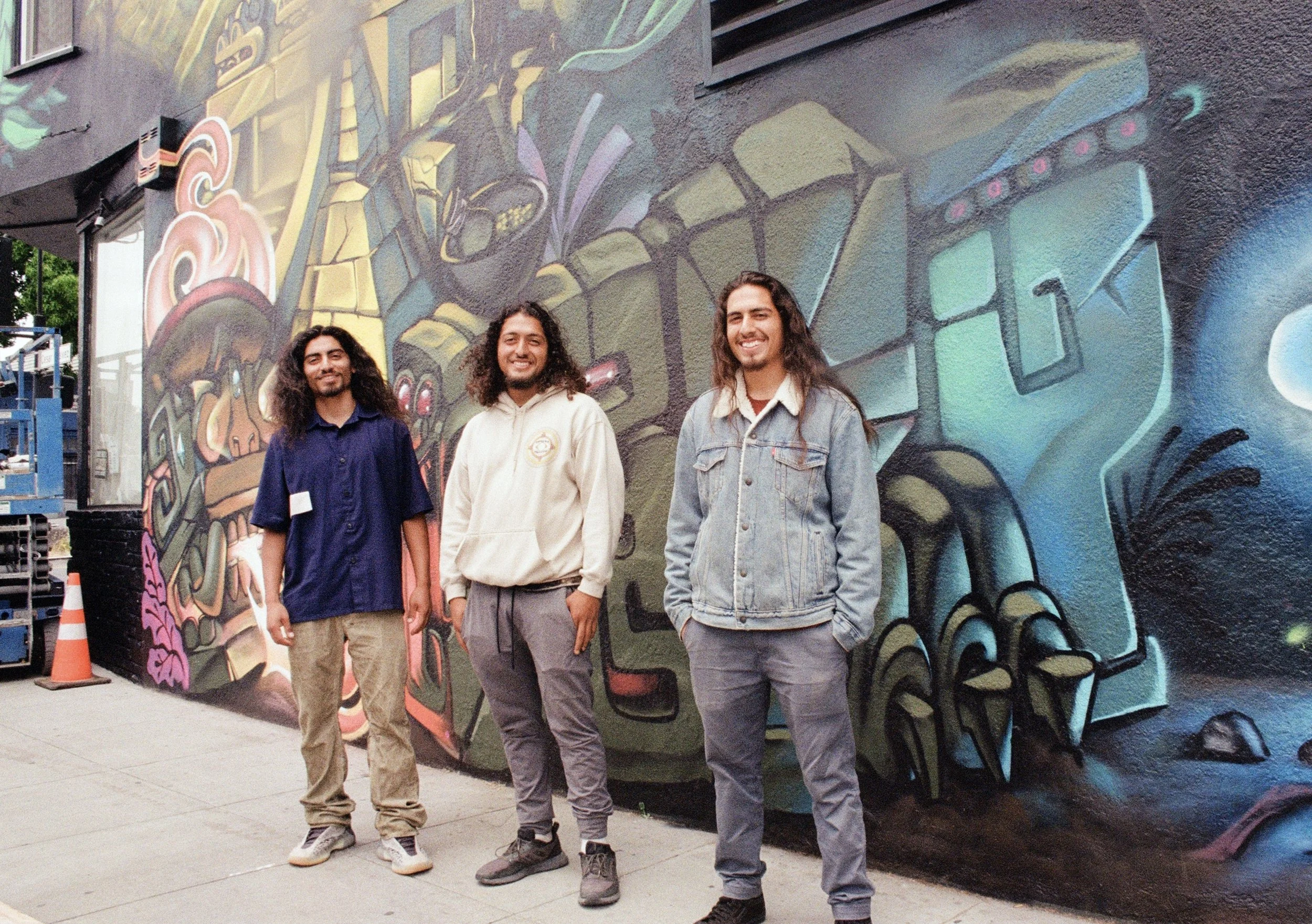 The Tapia brothers (Poncho Brotherz) pose in front of their Cesar Chavez storefront